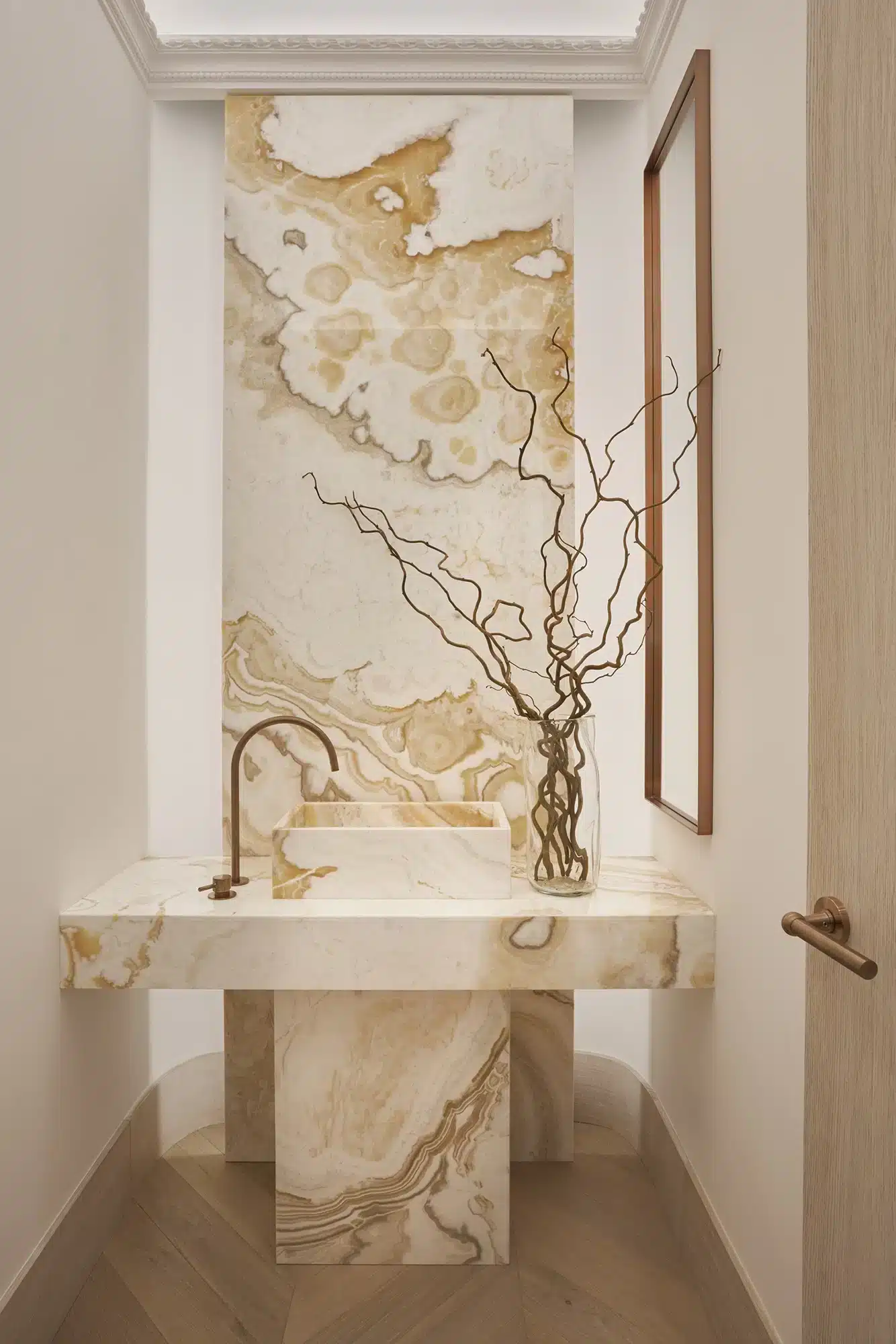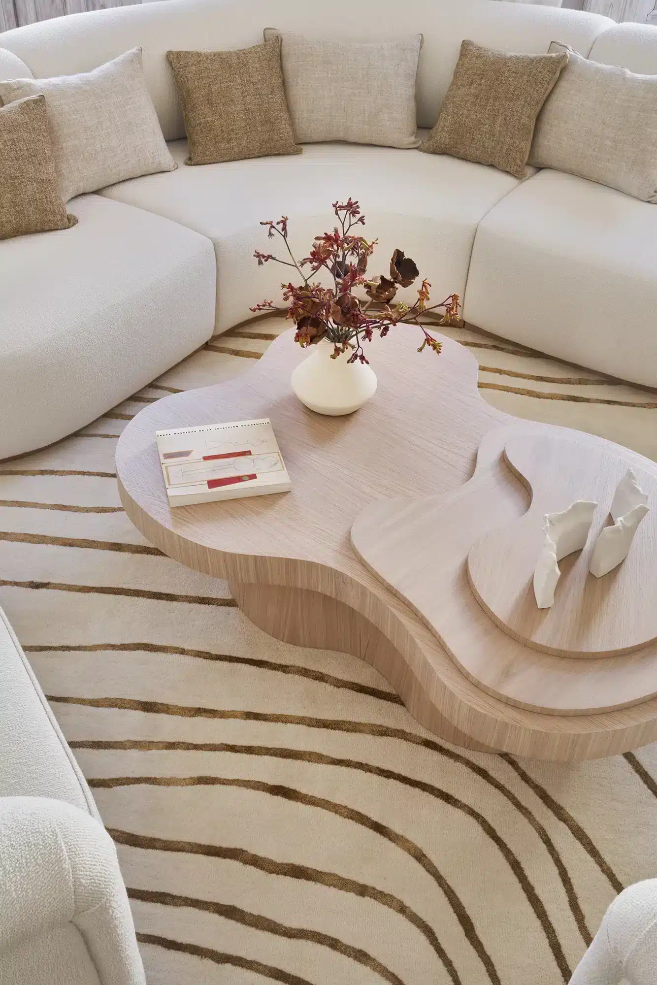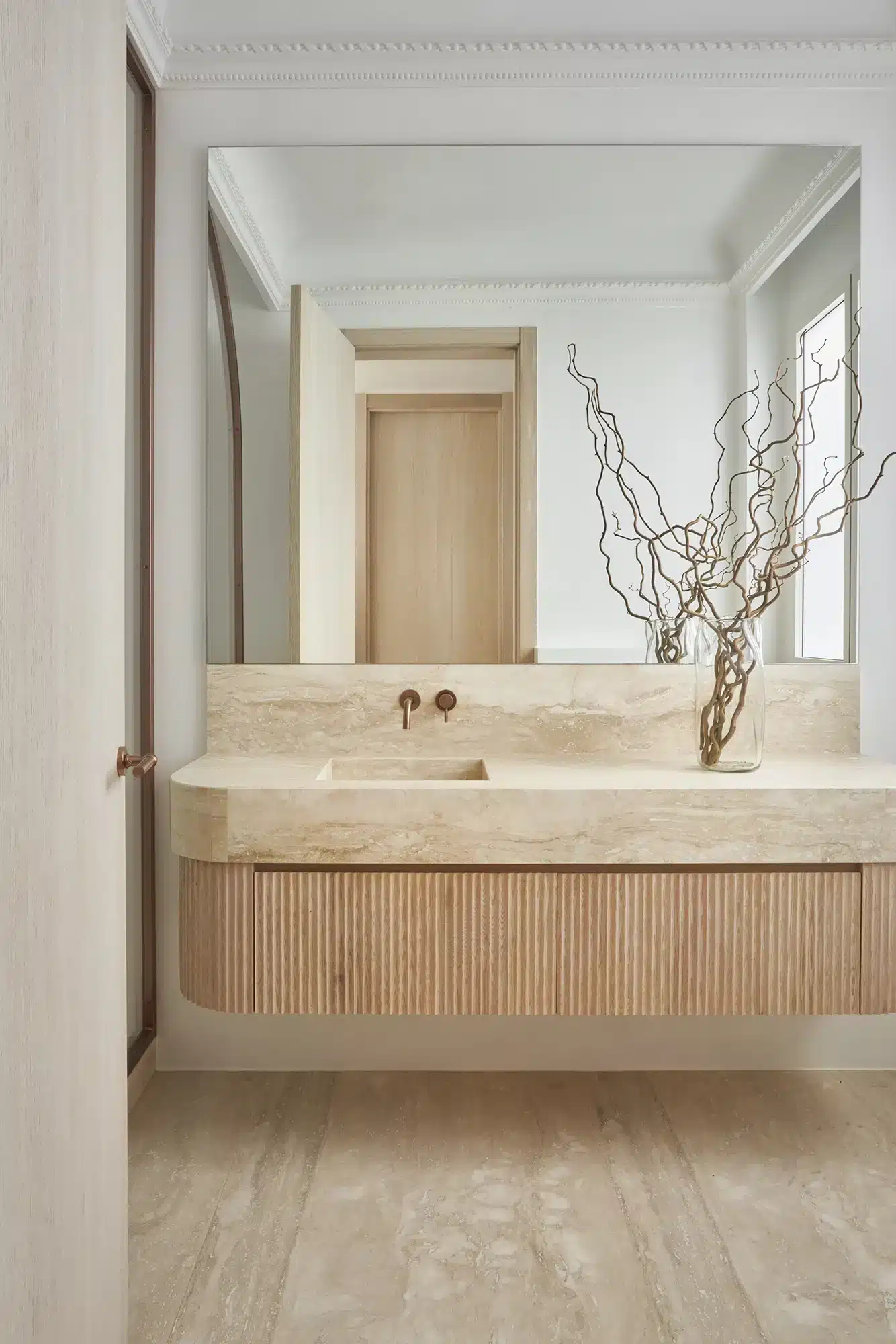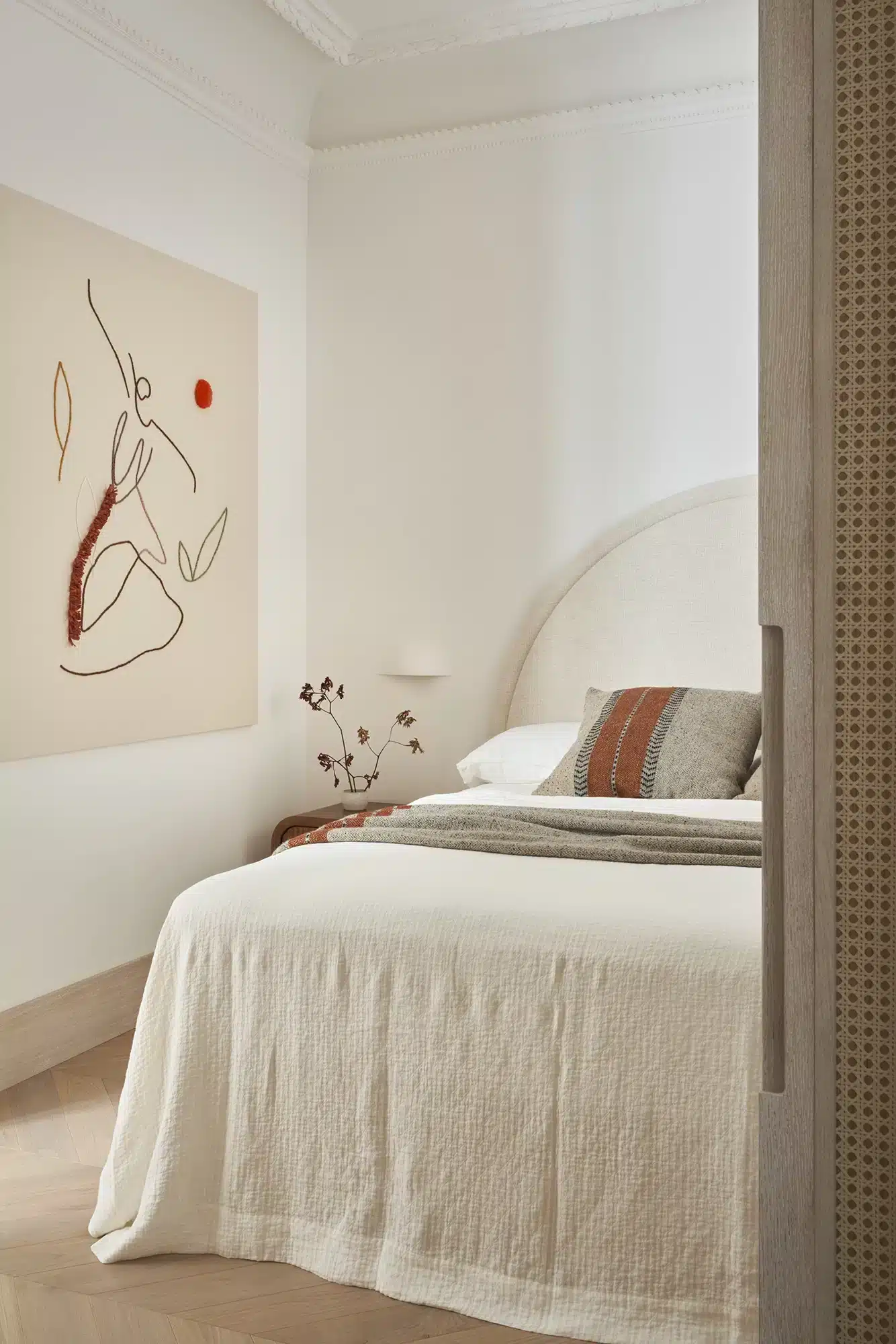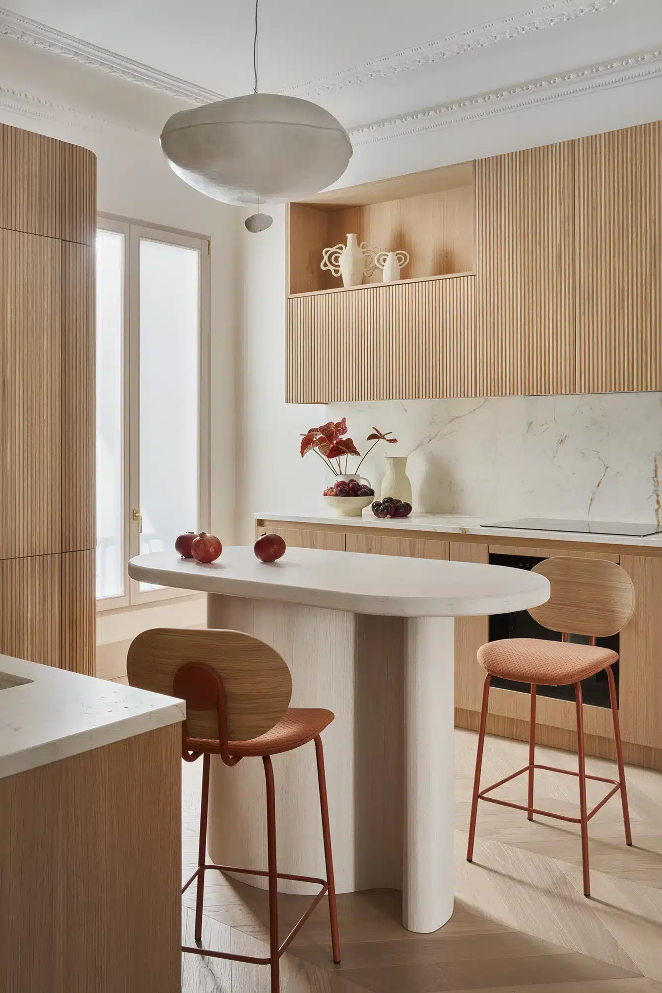 “Emoción Contenida. El “menos es más” también tiene su lado apasionante, como demuestra la reforma de este piso en el barrio señorial de Salamanca, en Madrid. Zinc Arquitectos trae al presente lo mejor del pasado acudiendo a los materiales nobles, las formas sinuosas y los colores terrosos”